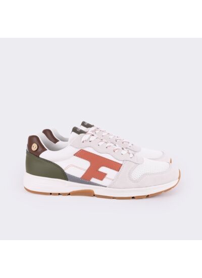Conçue par la marque FAGUO, cette running blanche et terracotta est dotée de la technologie de semelle Flexway, qui offre deux points de flexion à l'avant pour suivre le mouvement naturel de ton pied lors de la marche.,La tige en polyester recyclé de la running blanche et terracotta est accompagnée d'empiècements en suède et PU pour un look tendance et décontracté. La semelle extérieure en phylon injecté et caoutchouc recyclé à 15% garantit une adhérence optimale, tandis que les lacets en polyester assurent un maintien parfait.,Le packaging recyclé et recyclable de la OLIVE blanche & terracotta est un gage de respect de l'environnement. Et pour chaque paire achetée, un arbre est planté, ce qui en fait un choix éco-responsable.,Que tu sois en ville ou à la campagne, la running blanche et terracotta OLIVE est la chaussure idéale pour un look casual, tendance et moderne. Légère et confortable, elle t'accompagnera dans toutes tes aventures urbaines. N'attends plus et adopte dès maintenant la running blanche & terracotta, une paire de chaussures lifestyle qui allie style et respect de l'environnement.,Points clés :