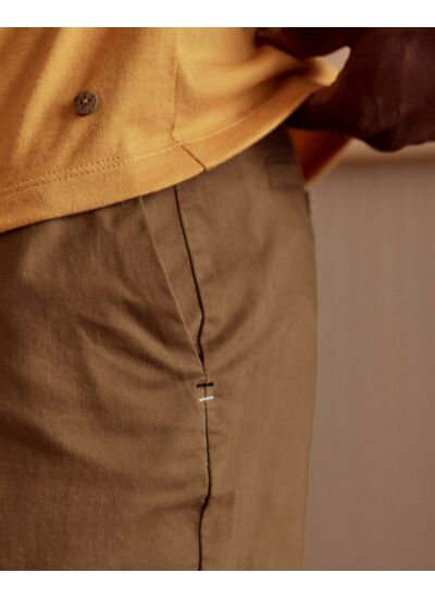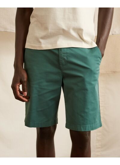 Confectionné dans une toile de coton au toucher peau de pêche, ce short pour homme se distingue par sa douceur et son aspect raffiné. Une touche d’élasthanne dans la matière lui apporte une élasticité subtile, garantissant une liberté de mouvement optimale. Teint-en-pièce, il arbore une finition légèrement patinée, qui renforce son caractère authentique.