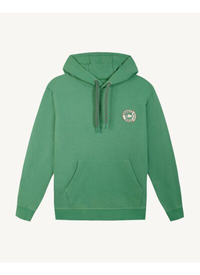 Avec le hoodie vert DIRAC, FAGUO réinvente l’univers streetwear en lui insufflant des valeurs d’engagement et de durabilité.,- Matière molleton en coton et polyamide InResT provenant de filets de pêche