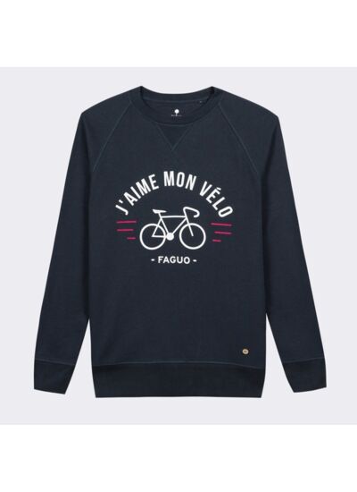 80% coton dont 30% recyclé, 20% polyester (100% recyclé),Découvre l'esprit urbain avec le sweatshirt DARNEY bleu marine "J'aime mon vélo", un emblème de style chez FAGUO. Son molleton, à la fois doux et facile d'entretien, te garantit une expérience vestimentaire sans compromis. La coupe classique et les manches raglans confèrent à ce sweat bleu marine une allure intemporelle. Fabriqué avec une matière molleton certifiée OEKO-TEX® 100, ce sweatshirt homme arbore une sérigraphie iconique, faisant de chaque pièce une œuvre unique. Chaque achat contribue à la plantation d'arbres, t'invitant ainsi à être un acteur positif pour l'environnement. Choisis le sweatshirt bleu marine DARNEY "J'aime mon vélo", une combinaison parfaite de confort, de style, et d'engagement éco-responsable.,Points clés : Matière molleton Matière certifiée OEKO-TEX® 100 Sérigraphie iconique Ref : S21SW0101 NAV00,FAGUO est certifié B Corp™pour garantir des standards sociaux et environnementaux élevés et une transparence totale. Cette pièce FAGUO a été conçue à Nantes en France et fabriquée dans un atelier en Chine audité en externe pour valider ses bonnes pratiques sociales et environnementales.