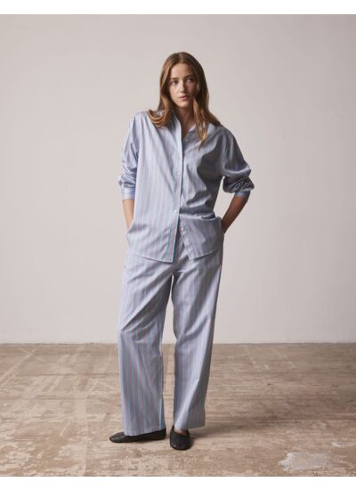 La chemise Delina rayée bleue peut s'associer au pantalon Léone.