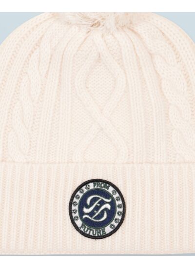 Confectionné en cachemire 10 fils infiniment doux, ce bonnet côtelé et oversize vient parfaire votre allure avec un détail signature. Twisté d'un pompon et de torsades, il dévoile un badge brodé From Future apposé au revers.