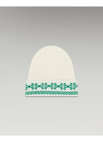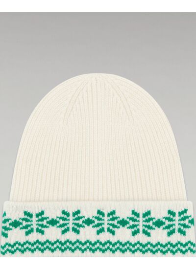 Réhaussez votre silhouette futuriste avec une pointe d'audace et de douceur avec ce bonnet côtelé à revers. Confectionné en cachemire 6 fils, il révèle des motifs traditionnels norvégiens bicolores et incarne l'élégance intemporelle. Mêlant confort et style, il vient compléter vos looks décontractés comme plus sophistiqués.