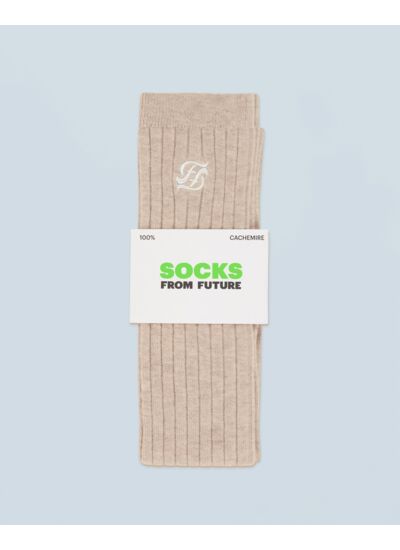 Confectionné en cachemire, ces chaussettes hautes et côtelées révèlent une broderie signature sur le haut. Accessoires indispensables du vestiaire From Future, elles complèteront vos silhouettes casual avec style et audace.