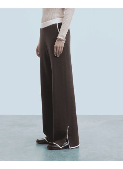 Une maille douce s'invite sur ce jogging long confectionné en cachemire. Sa taille élastiquée et son tombé large, soulignés par des liserés contrastés, dessinent une silhouette élancée. Associez-le au pull sans manches coordonné pour un total look chic et casual.