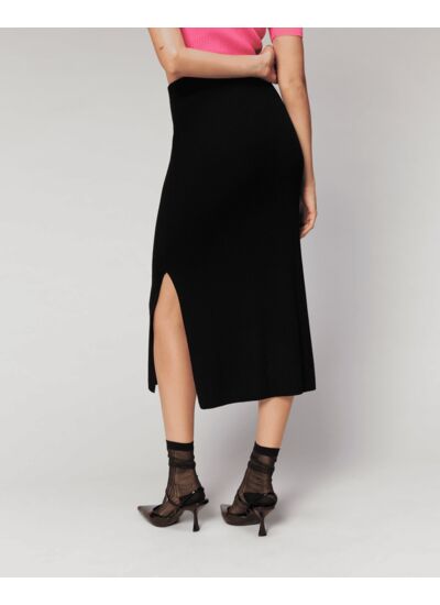 Le futur s'annonce audacieux ! Confectionnée en Laine Mérinos extra fine douce, côtelée et aérée, cette jupe mi-longue dévoile une coupe ajustée et se porte comme une seconde peau. Mêlant confort et élégance, elle affiche une taille élastiquée et une fente sur le bas. Complétez votre silhouette et mixez-la à un top en maille, une paire d'escarpins et des bijoux.
