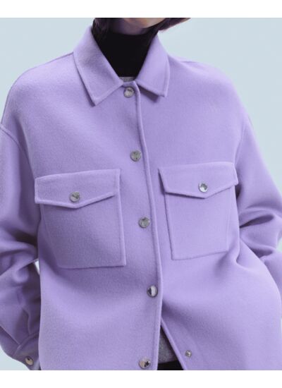 Coupe impeccable et lignes affirmées, ce manteau court en laine double face réchauffe votre allure tout en douceur. Muni d'un col chemise, d'une fermeture à boutons pression et de deux poches poitrine plaquées à rabat, il dévoile une silhouette élégante et structurée. Pièce indispensable de la saison, il accompagne vos tenues décontractées comme plus sophistiquées.