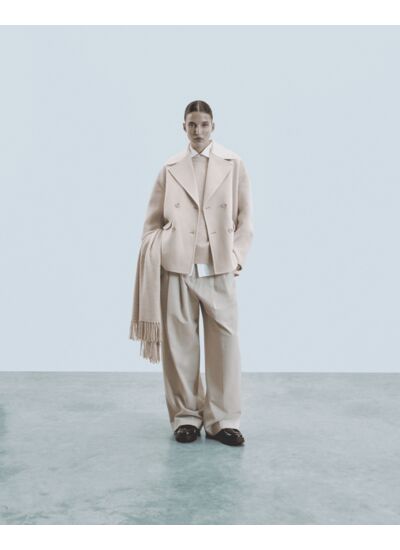 Déclinée dans une couleur douce, cette veste caban courte apporte un supplément d'éclat à votre allure de saison. Confectionné en laine certifiée RWS (Responsable Wool Standard), elle dessine une silhouette structurée par un col tailleur, une fermeture à double boutonnage et deux poches à rabat.