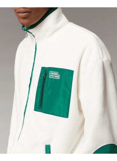 Réhaussez votre vestiaire futuriste avec notre veste polaire oversize ornée d'empiècements contrastés, une invitation à l'aventure cosmique dans un confort inégalé. Munie d'un col montant, de manches longues, d'une fermeture zippée et de stoppeurs sur le bas, elle affiche deux poches latérales et une poche poitrine plaquée zippée ornée d'une broderie "From Future". Facile à associer, mixez-là à un jean casual ou un pantalon structuré.