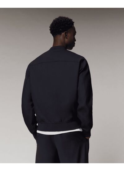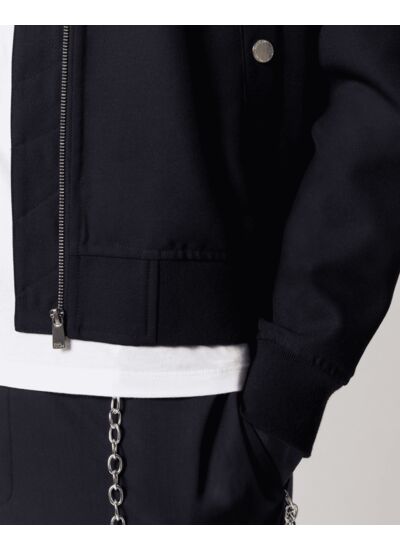 L'indispensable veste teddy oversize aux lignes futuristes trouvera une place de choix dans votre vestiaire masculin. Confectionnée à partir de laine, elle est munie de manches longues, d'une fermeture zippée, de deux poches à boutons pression et de bords contrastés et côtelés. Facile à associer, complétez votre look avec un t-shirt en coton et un jean décontracté.