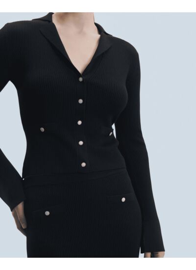 - Pull cardigan court style tailleur en laine mérinos Femme
