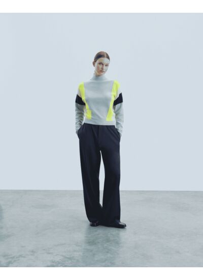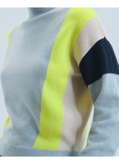 Ce pull en cachemire arbore des bandes tricolores sur les côtés, de quoi apporter une touche d'audace à l'allure structurée. Muni d'un col montant, de manches longues et de bords côtelés, il s'associe à un jean ample ou une jupe fluide.