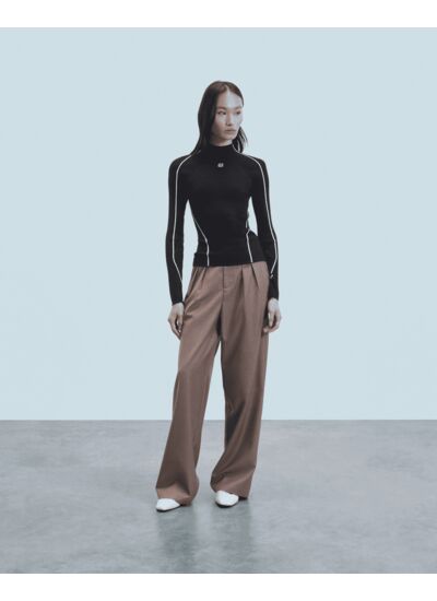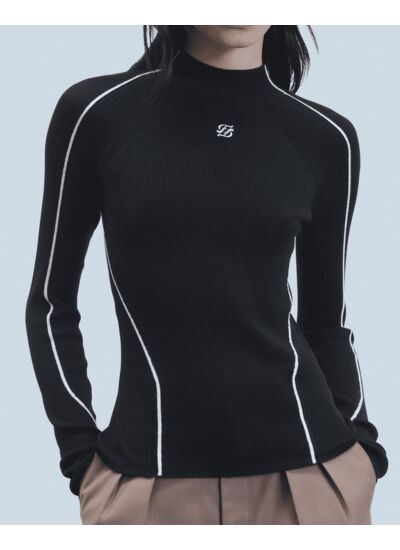 Ce pull côtelé, confectionné en laine mérinos certifiée RWS (Responsible Wool Standard), est muni d'un col montant et de manches longues. Orné d'une broderie "FF" à l'avant, des liserés se dessinent le long de la silhouette, créant un jeu de contrastes audacieux. À porter comme une seconde peau, complétez votre look de saison avec un pantalon décontracté ou un jean structuré.