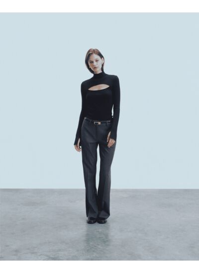Confectionné en 100% laine mérinos certifiée RWS (Responsible Wool Standard), ce pull côtelé joue des lignes et des contrastes pour une silhouette audacieuse. Muni d'un col montant et de manches longues, il s'associe à un pantalon et une veste structurée.