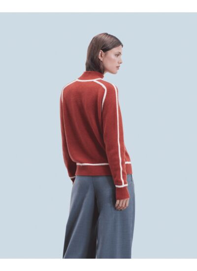 Notre iconique pull en cachemire se pare de lignes contrastées audacieuses. Son col montant, ses manches longues et ses bords côtelés dessinent une silhouette structurée, parfaite pour affirmer votre style cette saison. Associez-le à un pantalon ample ou une jupe courte pour un look chic et casual.