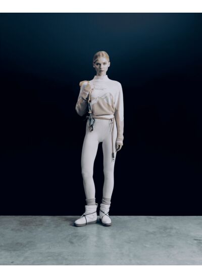 Sommets enneigés, douceur infinie. Sublimé par un imprimé montagne et une signature "Winter Season From Future", ce pull en cachemire vient réchauffer votre allure de saison. Son col montant, ses bords côtelés et contrastés dessinent une silhouette élégante, prête à conquérir les pistes avec style.