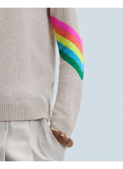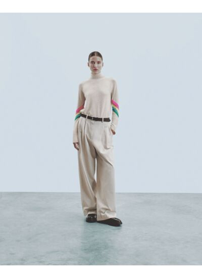 Pièce signature du vestiaire From Future, ce pull court en cachemire léger se pare de bandes multicolores aux manches. Muni d'un col montant et de bords côtelés, il réveille votre silhouette de saison avec un supplément d'audace. Mixez-le à un pantalon large ou une jupe fluide.