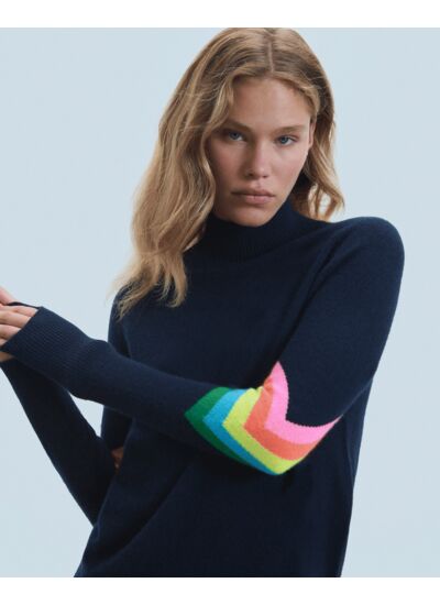 Pièce signature du vestiaire From Future, ce pull court en cachemire léger se pare de bandes multicolores aux manches. Muni d'un col montant et de bords côtelés, il réveille votre silhouette de saison avec un supplément d'audace. Mixez-le à un pantalon large ou une jupe fluide.
