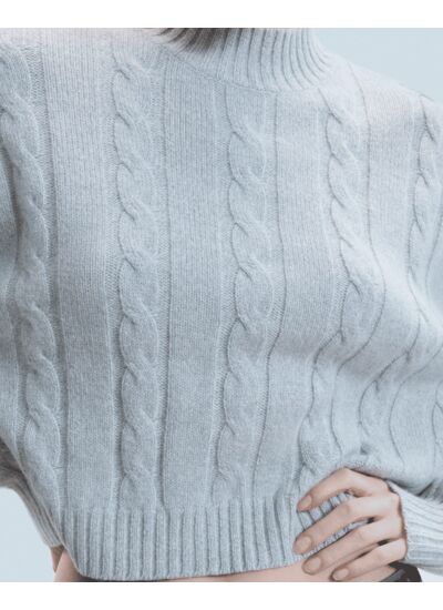 Confectionné en cachemire, ce pull court se distingue par un délicat jeu de torsades. Muni d'un col montant, de manches longues et bords côtelés, il confère une silhouette élégante et intemporelle. Structurez votre silhouette en l'associant à une jupe courte et des sneakers.
