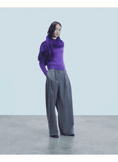 Confectionné en cachemire, ce pull court s'impose comme un indispensable du vestiaire féminin. Léger et infiniment doux, il est muni d'un col montant, de manches longues et des bords côtelés. Jouez avec les volumes et mixez-le à un pantalon de tailleur ample.