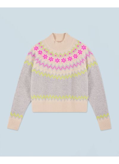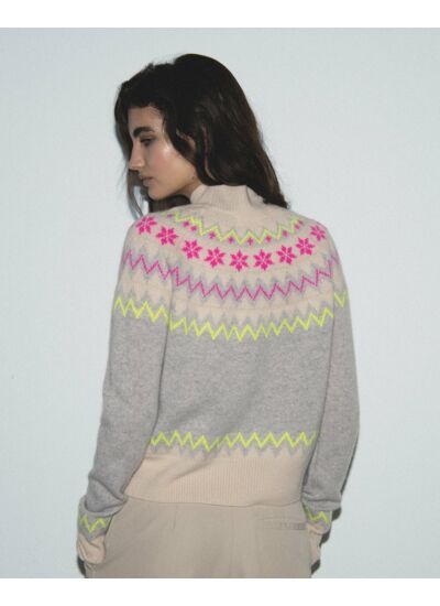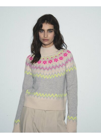 Réhaussez votre silhouette de saison avec ce pull court orné de motifs norvégiens. Confectionné en cachemire, il dévoile un col montant, des manches longues et des bords contrastés. Optez pour un look casual et mixez-le à un pantalon droit ou une jupe fluide.