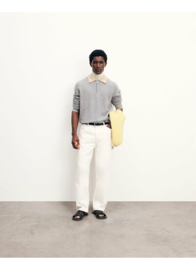 Confectionné en cachemire 4 fils, ce pull bicolore dévoile un col polo zippé contrasté pour une allure affirmée avec élégance. Des bords côtelés structurent sa coupe longue et oversize. Idéal pour un style décontracté chic, à porter avec un pantalon de tailleur.