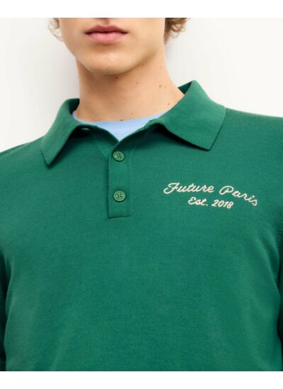 Confectionné en laine mérinos 2 fils, ce pull arbore un col polo contrasté et une broderie "Future Paris Est. 2018" sur la poitrine. Avec une coupe ajustée et structurée, il dévoile des manches courtes et ses bords côtelés.