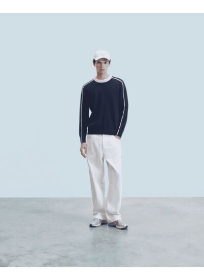 Élevez votre look de saison avec ce pull confectionné en cachemire 2 fils infiniment doux. Doté d'un col rond et des bords côtelés, il dévoile des liserés le long des manches, créant un jeu de contrastes audacieux.