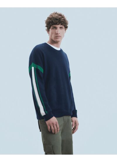 Réhaussez votre allure avec ce pull confectionné en cachemire. Muni d'un col rond, il affiche des bandes bicolores le long des manches, de quoi apporter une touche d'audace à votre silhouette. Complétez votre look avec un pantalon droit et des sneakers.