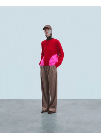 Ce pull oversize, orné d'une signature "FF" à l'avant, dévoile un col rond et des manches longues. Confectionné en cachemire, ses bords bicolores contrastées structurent la silhouette avec élégance. Optez pour un look casual en le mixant à un jean droit ou une jupe fluide.