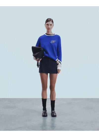 Orné d'une signature brodée "F" sur la poitrine, ce pull long et oversize adopte une maille douce en 100% cachemire. Des bandes bicolores soulignent le col rond, les manches longues et les bords côtelés, pour une allure chic et structurée. Associez-le à un jean ample ou une jupe fluide pour un look chic et casual.