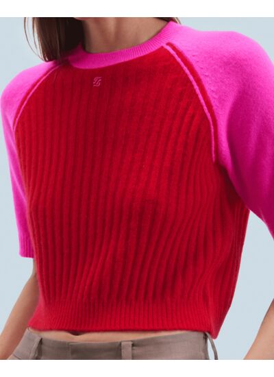 Confectionné en cachemire 2 fils, ce pull court bicolore se twiste d'un jeu de contrastes pour apporter un supplément d'audace à votre allure. Muni d'un col rond, de manches courtes et de bords côtelés, il dévoile une broderie signature FF à l'avant. Associez-le à un jean ample ou une jupe fluide pour un look chic et casual.