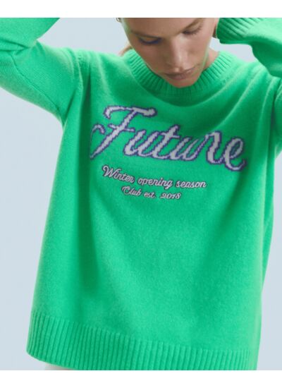 Rejoignez le Club avec ce pull vibrant, orné d'une signature contrastée "Future" à l'avant. Muni d'un col rond, de manches longues et de bords côtelés, il adopte une maille douce en 100% cachemire. Associez-le à un jean ample et une casquette pour un look chic et casual.