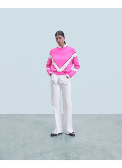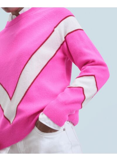 Réhaussez votre vestiaire avec ce pull en cachemire aux contrastes audacieux. Muni d'un col rond, de manches longues et de bords côtelés, des bandes bicolores structurent la silhouette. Complétez votre look de saison avec une robe fluide ou une jupe structurée.