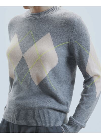Des losanges contrastés s'invitent sur ce pull oversize confectionné en cachemire. Muni d'un col rond, de manches longues et de bords côtelés, il dévoile une broderie signature "F" ton sur ton sur la poitrine. Mixez-le à une jupe fluide ou un pantalon de tailleur pour un look sophistiqué.