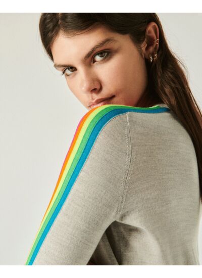 Pièce signature du vestiaire From Future, ce pull se pare de bandes multicolores le long des manches pour une allure vibrante et audacieuse. Confectionné en laine mérinos, il dévoile un col rond et des bords côtelés. Mixez-le à un jean droit ou une jupe fluide pour un look chic et casual.
