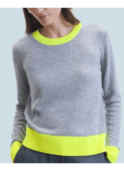 Confectionné en cachemire léger, ce pull court se distingue par ses lignes affirmées. Muni d'un col rond et de manches longues, il révèle des bords bicolores, créant un jeu de contrastes audacieux. À porter sans modération, optez pour une allure décontractée en l'associant à un pantalon fluide ou un jean flare.