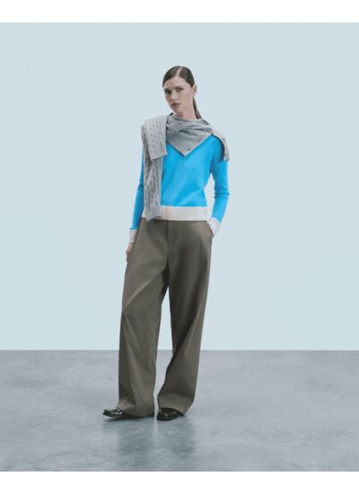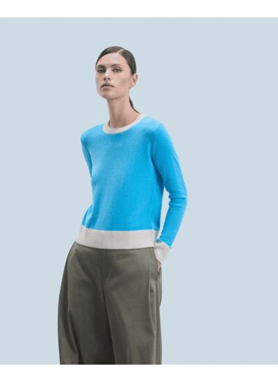Confectionné en cachemire léger, ce pull court se distingue par ses lignes affirmées. Muni d'un col rond et de manches longues, il révèle des bords bicolores, créant un jeu de contrastes audacieux. À porter sans modération, optez pour une allure décontractée en l'associant à un pantalon fluide ou un jean flare.
