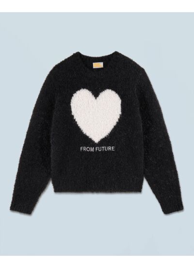 Rejoignez le Club avec ce pull long et oversize, déclarant un cœur signé "Future". Mixez-le à un pantalon ample ou une jupe soyeuse.