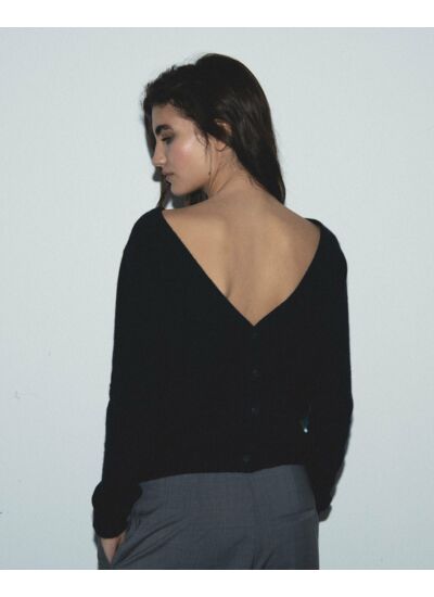 Confectionné en cachemire 2 fils, ce pull s'impose comme la pièce maîtresse de la saison. Doté d’un col rond, de manches longues et de bords côtelés, elle révèle un dos nu audacieux, orné d’une fermeture boutonnée. Associez-le à une jupe fluide pour un look résolument chic.