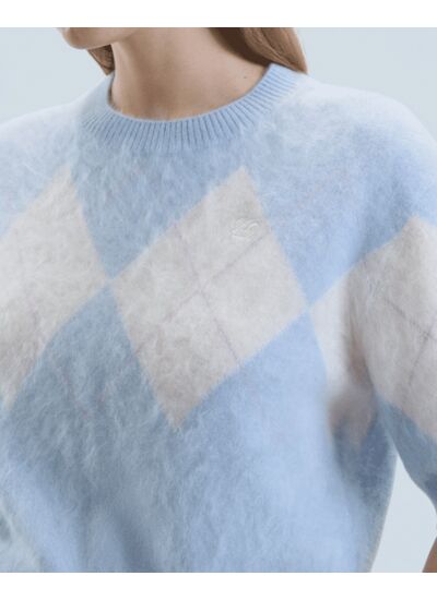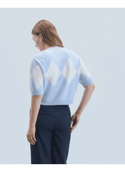 Confectionné en cachemire brossé, ce pull court et oversize se distingue par ses losanges contrastés et ses nuances douces. Orné d'une signature "FF" sur la poitrine, il dévoile un col rond, des manches courtes et des bords côtelés. Idéal pour réchauffer votre allure de saison, il s'associe à un jean ample ou une jupe fluide.
