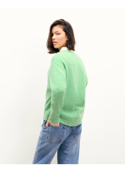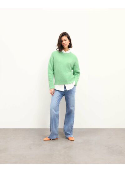 Ce pull se distingue par une maille moulinée confectionnée en cachemire 4 fils. Avec un col rond et des manches longues, il dévoile une coupe oversize décontractée. Complétez votre look avec un pantalon droit ou une jupe fluide.
