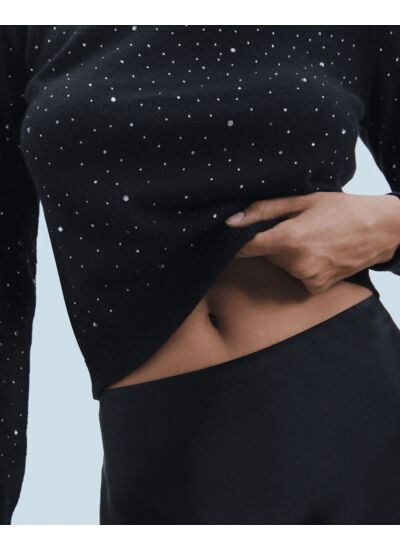 Ce pull en cachemire infiniment doux dévoile une maille légère twistée de détails audacieux. Muni d'un col rond, de manches longues et de bords côtelés, il s'illumine de strass argentés constellés en all-over pour apporter une touche d'éclat à votre silhouette. Réchauffez votre allure avec style en l'associant à un jean décontracté et une veste structurée.