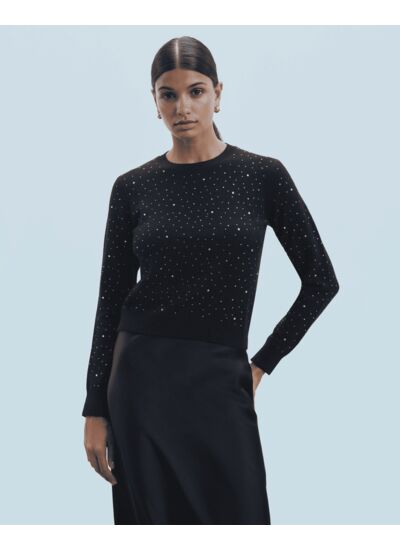 Ce pull en cachemire infiniment doux dévoile une maille légère twistée de détails audacieux. Muni d'un col rond, de manches longues et de bords côtelés, il s'illumine de strass argentés constellés en all-over pour apporter une touche d'éclat à votre silhouette. Réchauffez votre allure avec style en l'associant à un jean décontracté et une veste structurée.