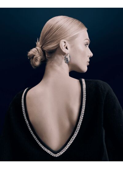 Pièce élégante et versatile, ce pull séduit par son col rond et son dos nu renversant, ornés de strass argentés. Confectionné en cachemire, il dévoile des manches longues et des bords côtelés. À porter de jour comme de nuit, associez-le à une jupe fluide pour un look sophistiqué.
