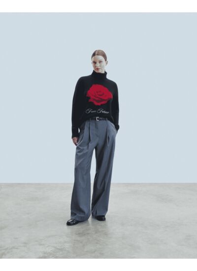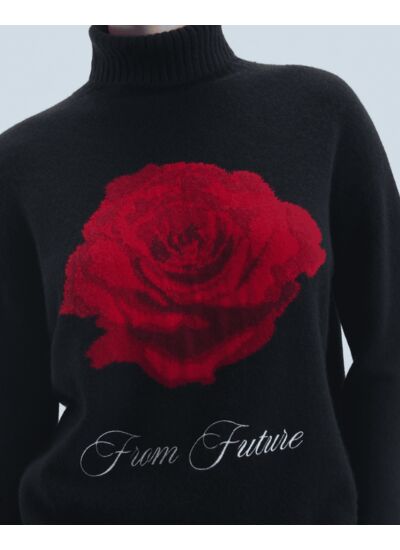 Ce pull en cachemire est sublimé par une rose rouge éclatante, signée "From Future". Muni d'un col roulé, de manches longues et de bords côtelés, il mêle douceur et élégance pour réhausser vos looks sophistiqués comme décontractés.