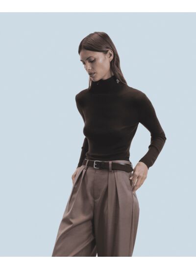 Confectionné en laine mérinos certifiée RWS (Responsible Wool Standard), ce pull côtelé se porte comme une seconde peau. Des manches longues et un col roulé, orné d'une broderie signature FF, apporte une touche de sophistication à votre silhouette. À mixer selon vos envies, complétez votre look casual avec une jupe fluide ou un jean ample.