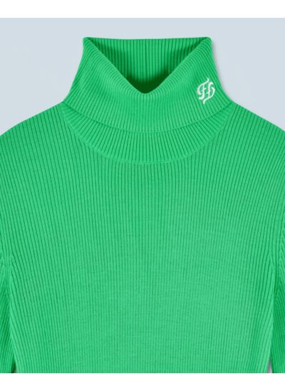 Confectionné en laine mérinos certifiée RWS (Responsible Wool Standard), ce pull côtelé se porte comme une seconde peau. Des manches longues et un col roulé, orné d'une broderie signature FF, apporte une touche de sophistication à votre silhouette. À mixer selon vos envies, complétez votre look casual avec une jupe fluide ou un jean ample.