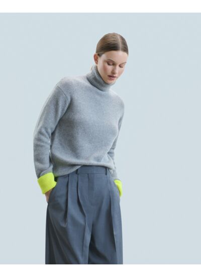 Illuminez votre silhouette de saison avec ce pull long et oversize, orné de poignets contrastés. Confectionné en cachemire, il dévoile un col roulé et des manches longues. À mixer selon vos envies, complétez votre look casual avec une jupe fluide ou un jean ample.