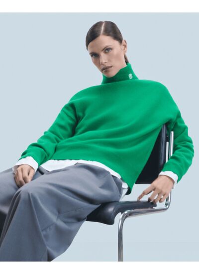Enveloppez-vous de douceur et d'élégance avec ce pull en cachemire, rehaussé d'un col roulé brodé d'une signature "FF". Ses manches longues et ses bords côtelés lui confèrent une allure intemporelle. Complétez votre look avec une veste structurée et un pantalon fluide.